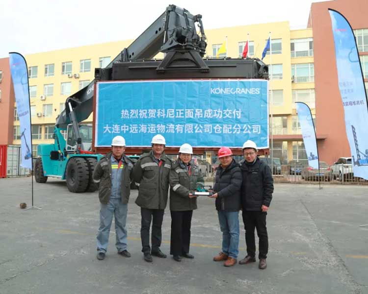 12月22日,科尼正面吊終于來到了美麗的大窯灣,成功交付大連中遠(yuǎn)海運(yùn)物流有限公司倉配分公司(簡稱“遠(yuǎn)洋場站”),為老客戶補(bǔ)充新力量。遠(yuǎn)洋場站總經(jīng)理司南女士,KCL北方區(qū)總經(jīng)理任道紅先生等相關(guān)負(fù)責(zé)人出席交付儀式。