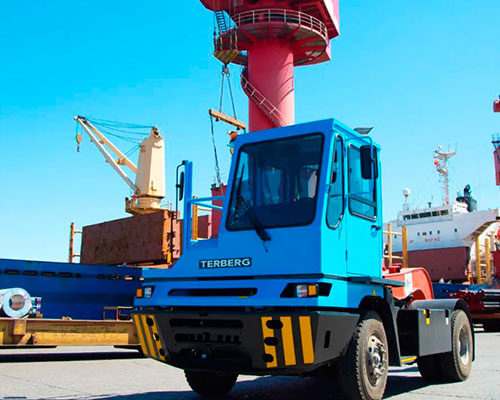 而為客戶定制的Terberg YT220也同樣令人眼前一亮。這臺YT 220根據(jù)客戶大噸位搬運需求,第五輪起升能力升級到45噸,GCW達到100噸,得益于Terberg的模塊化設(shè)計,YT 220還可以提供130噸的配置車型,滿足客戶業(yè)務(wù)發(fā)展的需求。