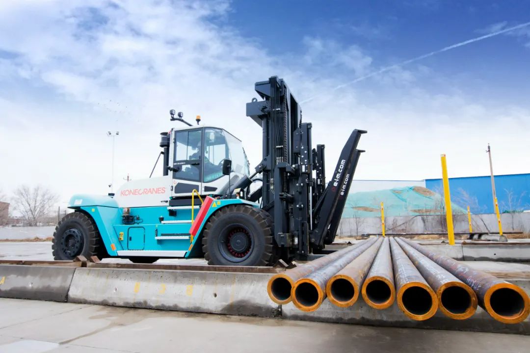 2021年底科尼向泰納瑞斯包鋼交付了兩臺(tái)安全可靠的重型叉車,叉車裝配丹麥原裝進(jìn)口的E-L-M鋼管抱夾屬具,配合插齒側(cè)移功能,可以安全、快速、準(zhǔn)確地拾取長(zhǎng)達(dá)10多米的重型鋼管。