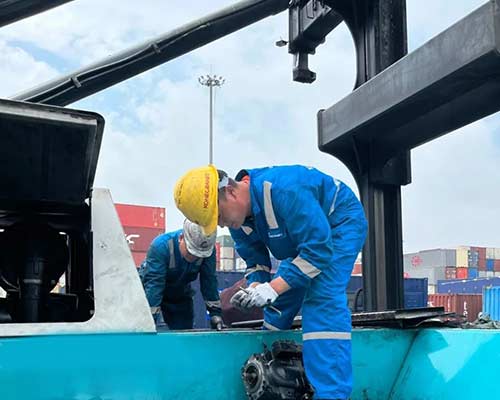 “我們很高興將新型國四空箱堆高機交付給我們的老伙伴,幫助他們緩解業(yè)務(wù)挑戰(zhàn)和環(huán)保壓力,”KCL中國區(qū)服務(wù)總監(jiān)曹禹先生說,“同時在服務(wù)方面,我們也希望能夠給予客戶更加及時和的支持,從備件支持到服務(wù)響應(yīng),我們都將匹配鑫華錫的運營效率,駐場工程師將為客戶提供24h在線服務(wù)支持,減少停機時間,幫助客戶提升堆場的運轉(zhuǎn)效率?!?/span>